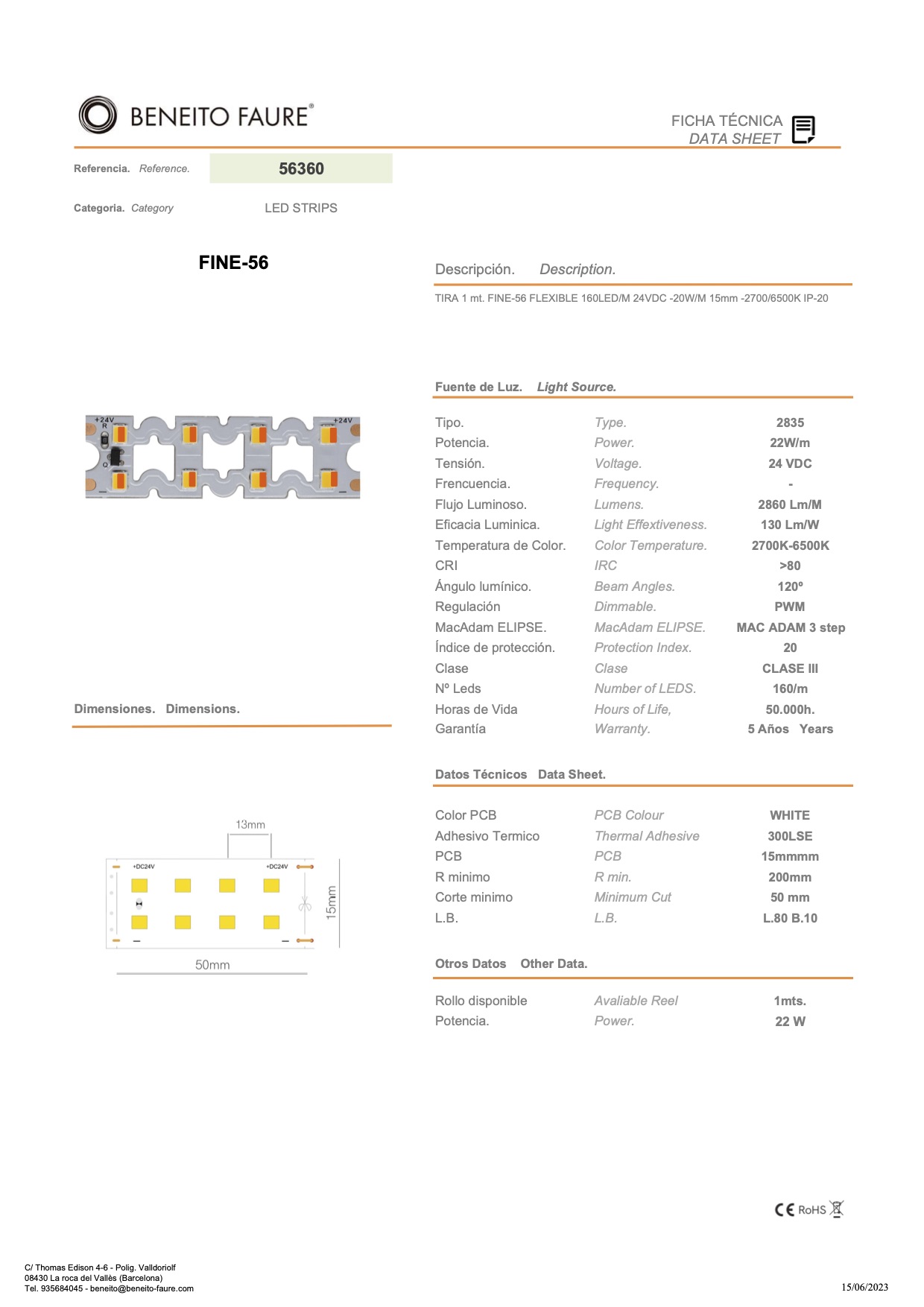 FINE-56 LED-STRIP 1m CCT 160LED/m IP20 24VDC 22W/m 130Lm/W 15mm