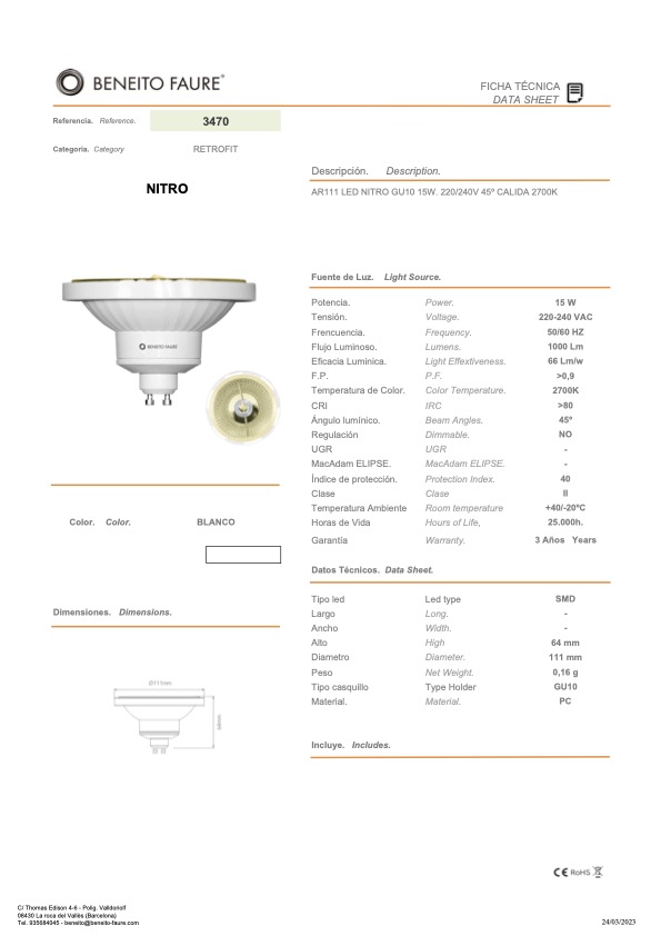 AR111 NITRO LED Strahler 15W GU10 240V 45° 2700K