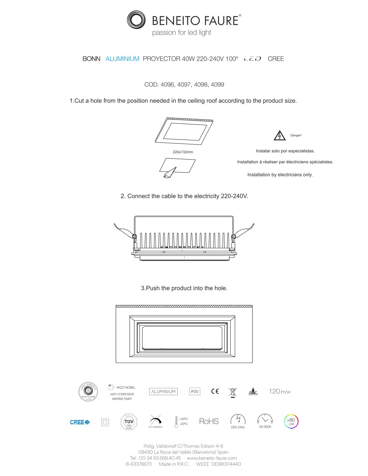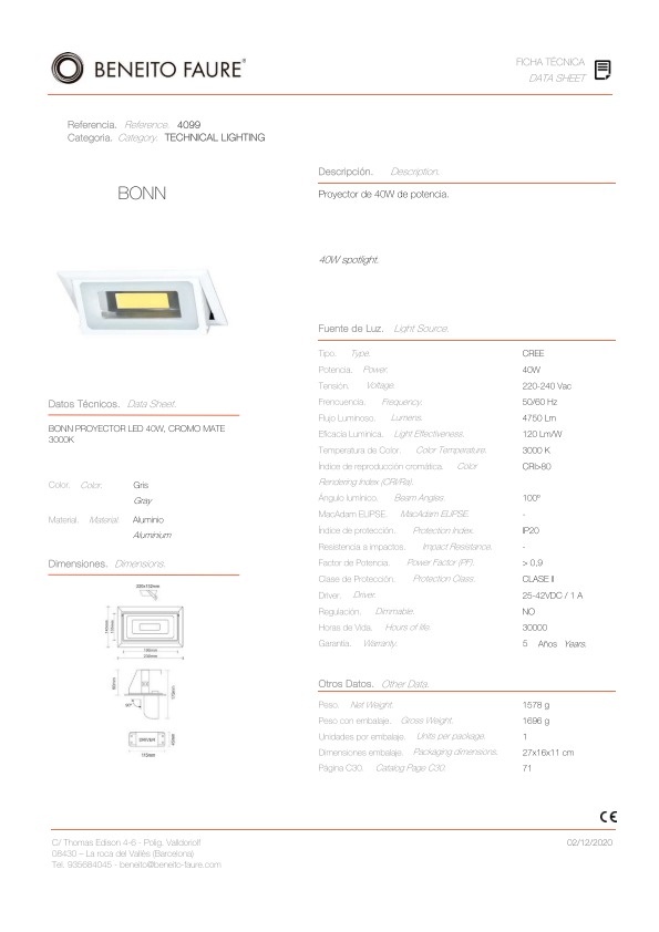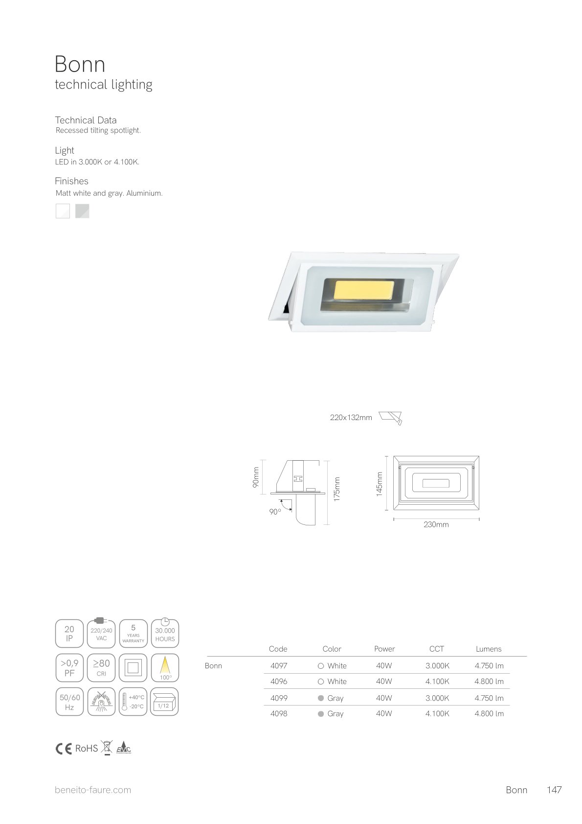 BONN LED Einbaudownlight GRAU 40W rechteckig kippbar 100° 3.000K