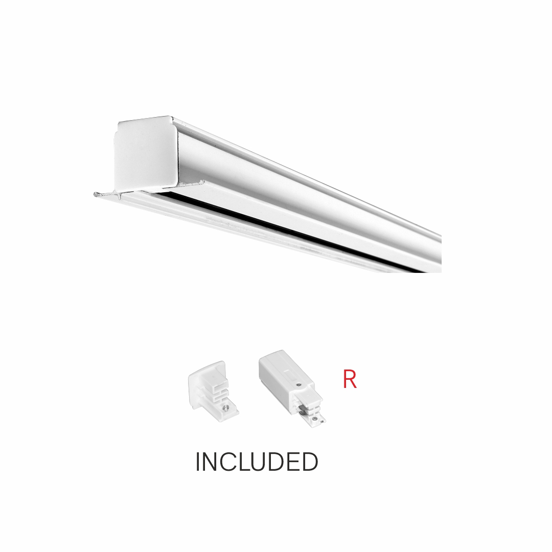 3-Phasen-Stromschiene mit Flügel 3 m inkl. Einspeisung und ENDKAPPE WEISS