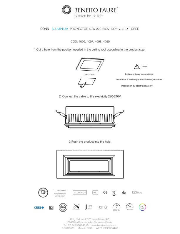 BONN LED Einbaudownlight WEISS 40W rechteckig kippbar 100° 4.100K