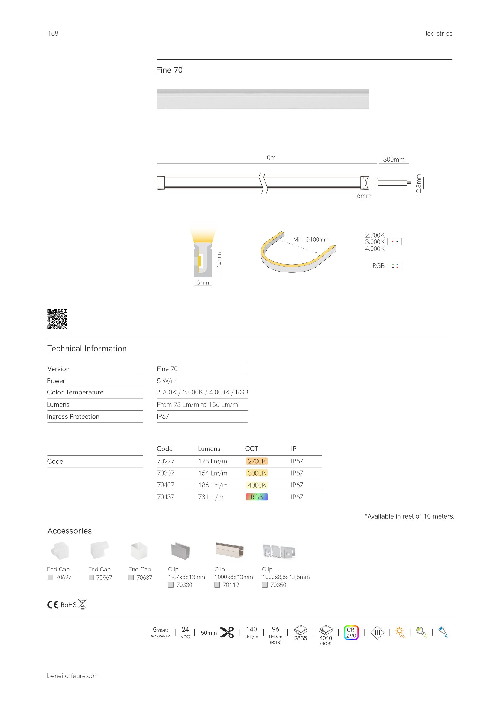 FINE-70 RGB LED-STRIP IP67 1m 24VDC 5W/m CRI90 12mm, Biegeradius 100mm