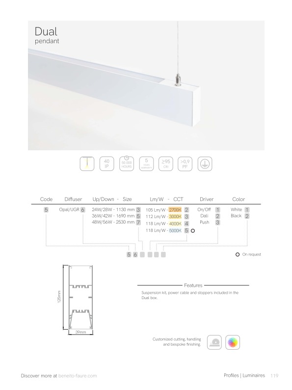DUAL Pendelleuchte UP/ DOWN 2530mm 104W 10185Lm 5.500K ON/OFF WEISS