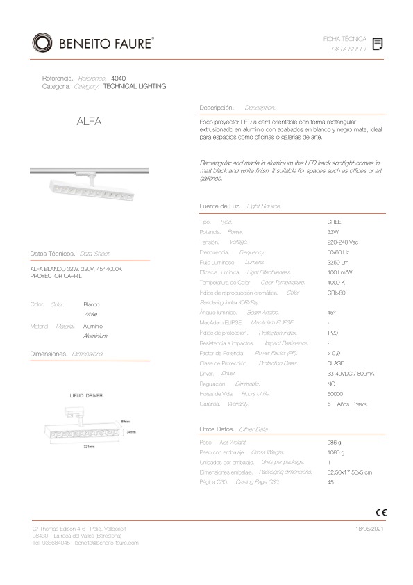 ALFA  3-Phasen-Strahler  32W  45°  4.000K  WEISS
