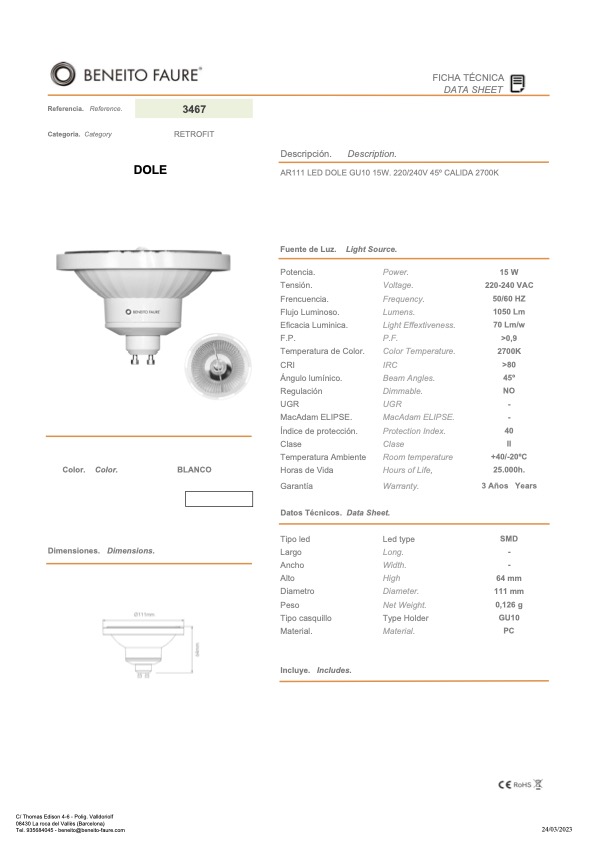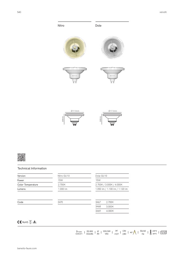 DOLE die Hochleistungs LED von Beneito Faure ist ein idealer Ersatz für Hochvolt-Halogenlampen mit Sockel GU10.
