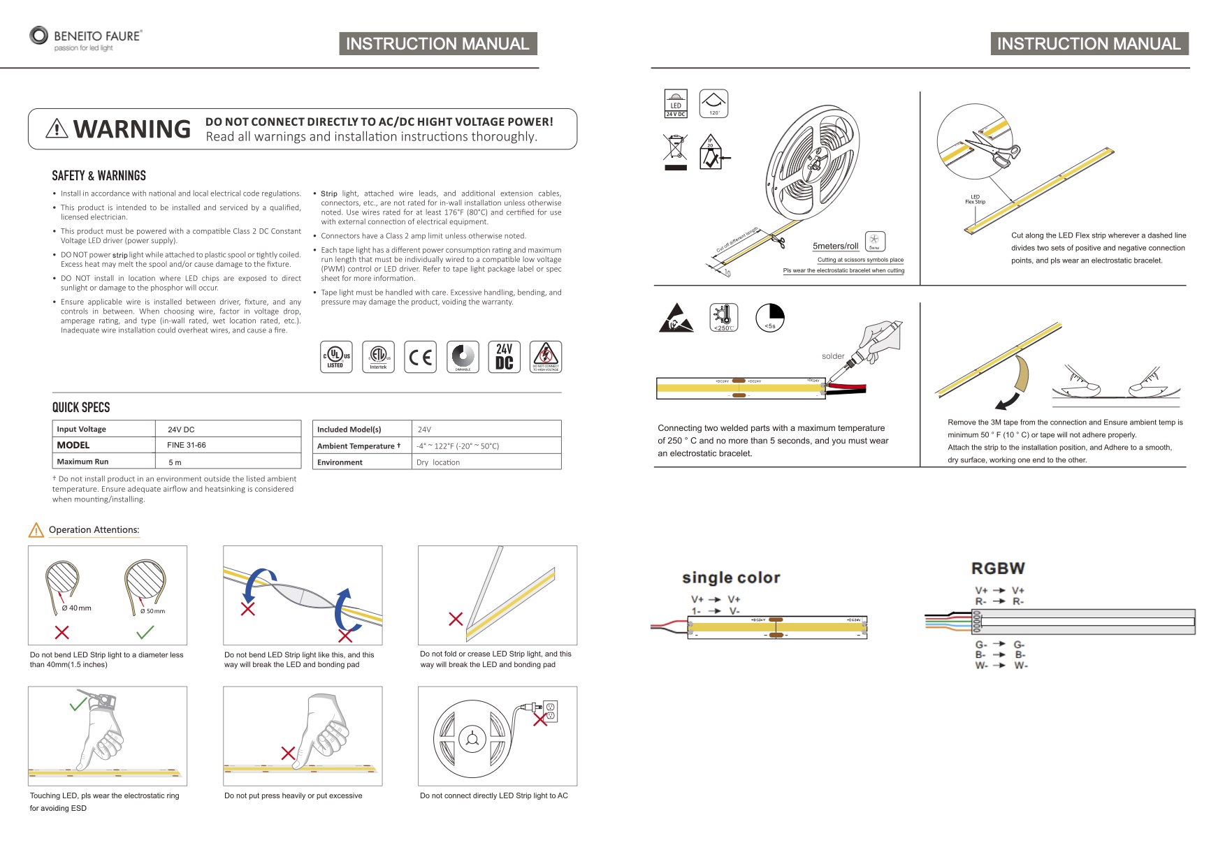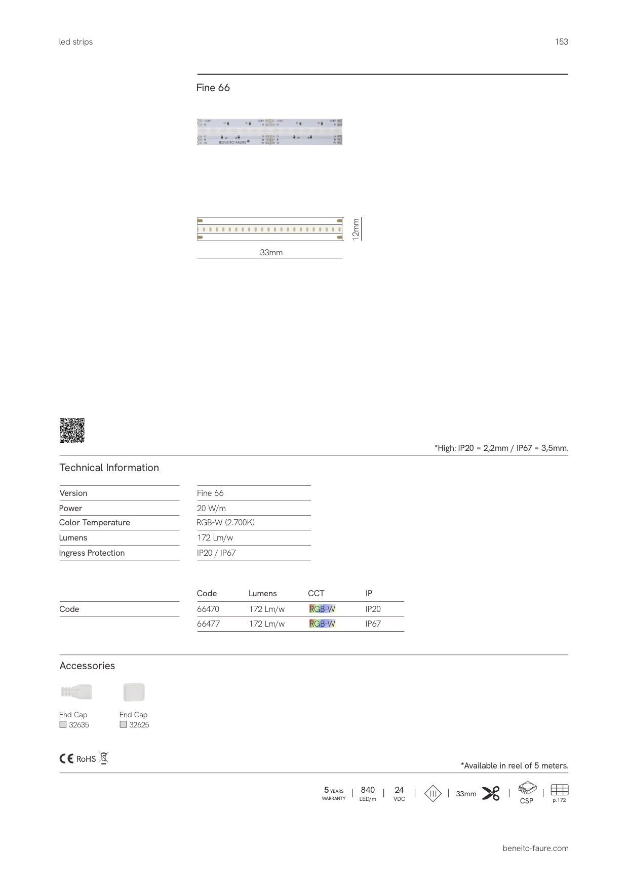 FINE-66 LED-STRIP 1m IP20 24VDC 20W/m RGB-W 12mm 1050Lm/m