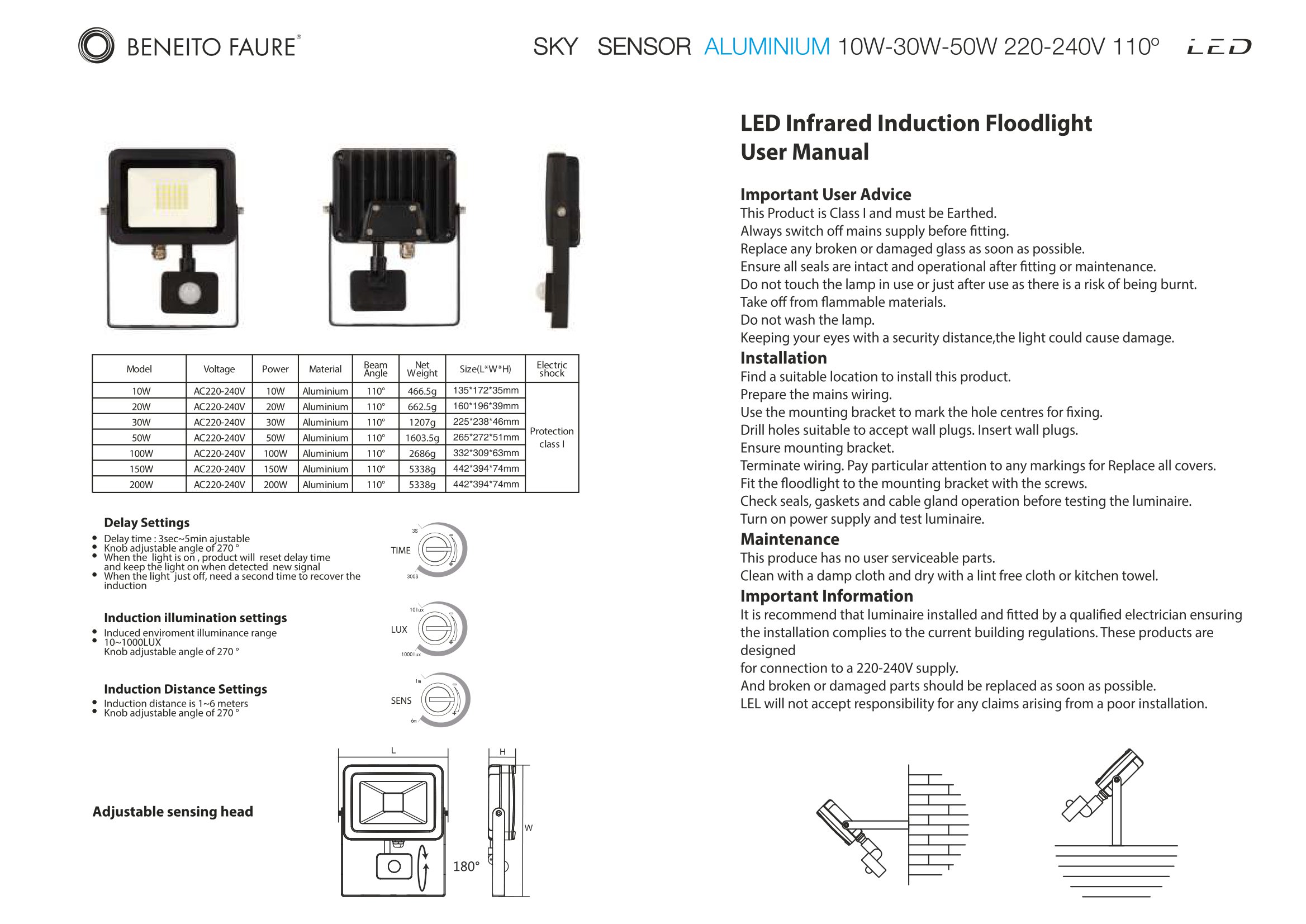 SKY LED Fluter mit Microwave Sensor 10W 120° 5.000K WEISS