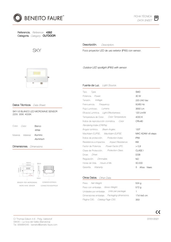 SKY LED Fluter mit Microwave Sensor 30W 120° 4.000K WEISS