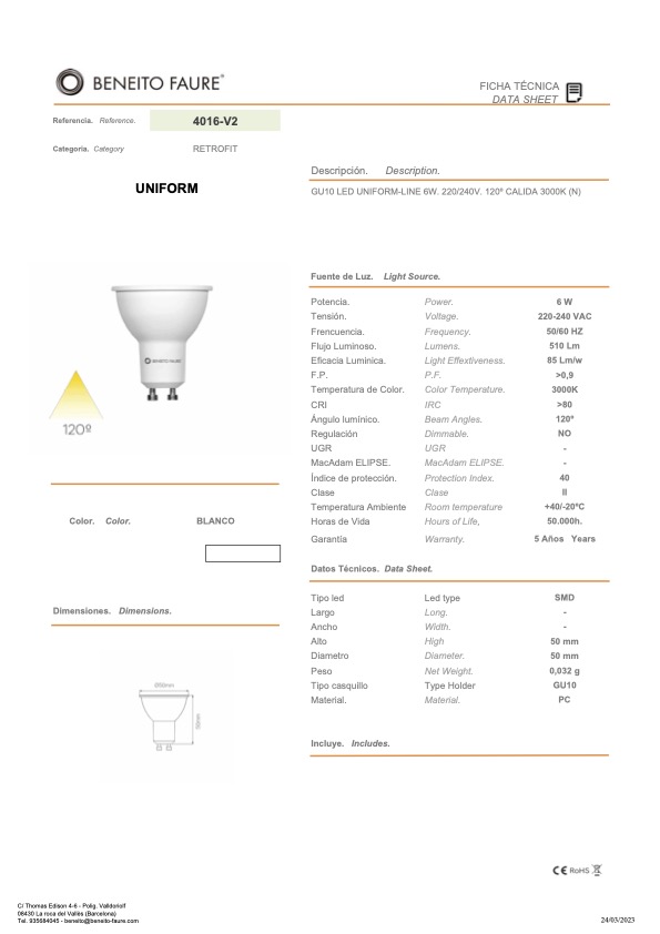 BF4016-V2 - 6W 3.000K | 510Lm