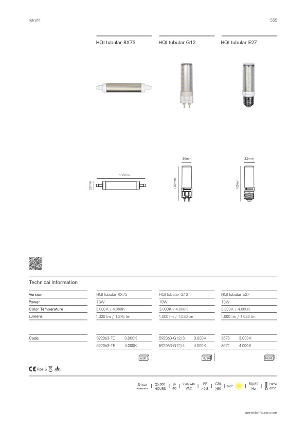 HQI G12 Tubolar LED mit Sockel G12 für den Spannungsbereich 230V.